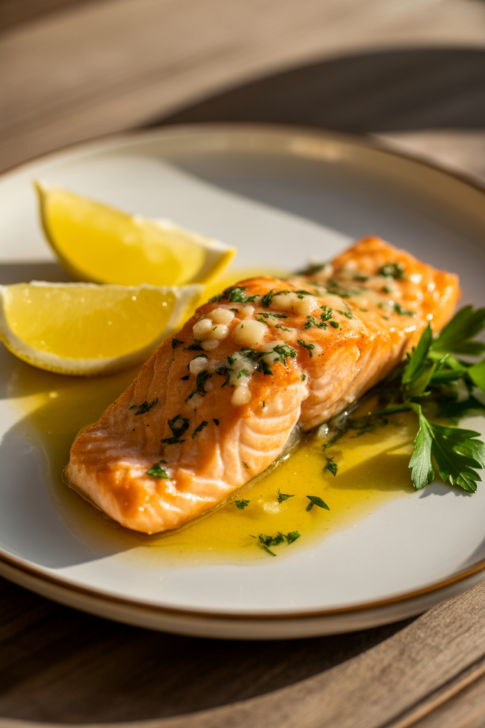 Garlic, butter, and lemon create a classic flavor combination that enhances salmon’s natural richness without overpowering it.
