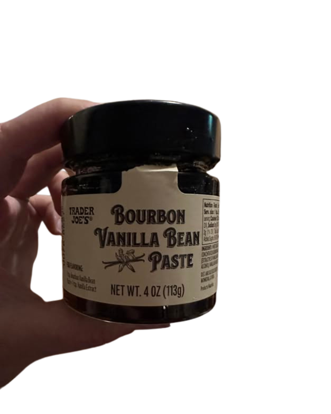 Trader Joe’s Bourbon Vanilla Bean Paste is a flavoring product used in baking and desserts that combines the flavor intensity of vanilla extract with the visible specks from vanilla bean seeds.